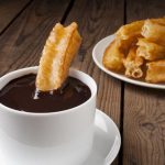 Callos madrilenos – des tripes à la madrilène ! Ou du jambon Serrano, oh mon Dieu ! Ou des churros avec un chocolat chaud, c’est très typique de Madrid.