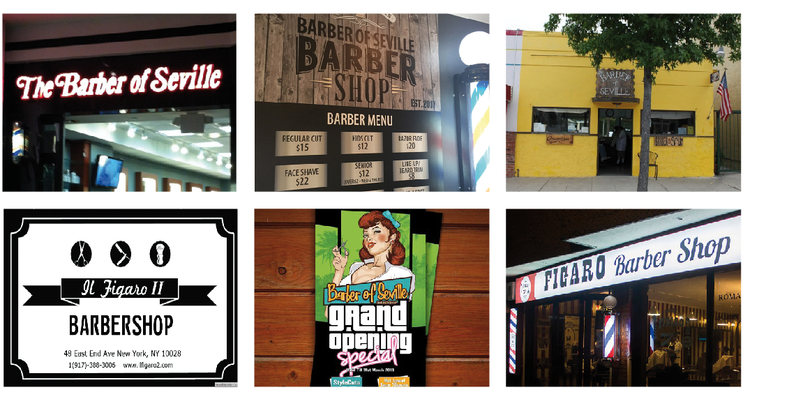 Par-delà les frontières de l’Europe, il semblerait que Rossini et Figaro aient engendré des vocations : ainsi, on trouve des Barber of Seville à Fairfax (Virginie), Denver (Colorado), San Diego (Californie), New York, Melbourne ou encore Bogota.